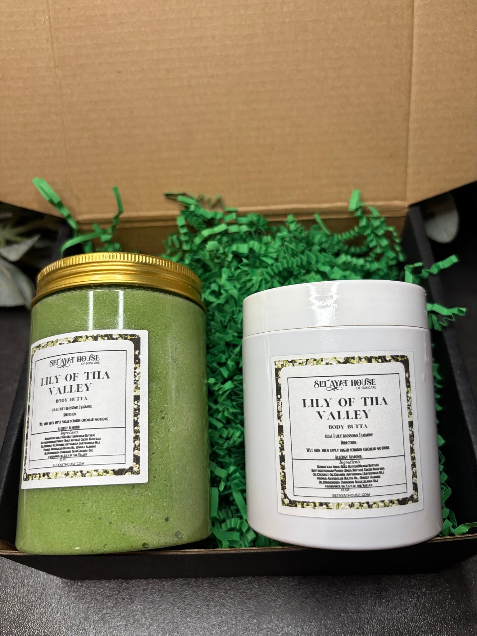 A gentle, floral sugar scrub infused with French Green Clay to detoxify and restore the skin, paired with the rich hydration of our matching Body Butta.
